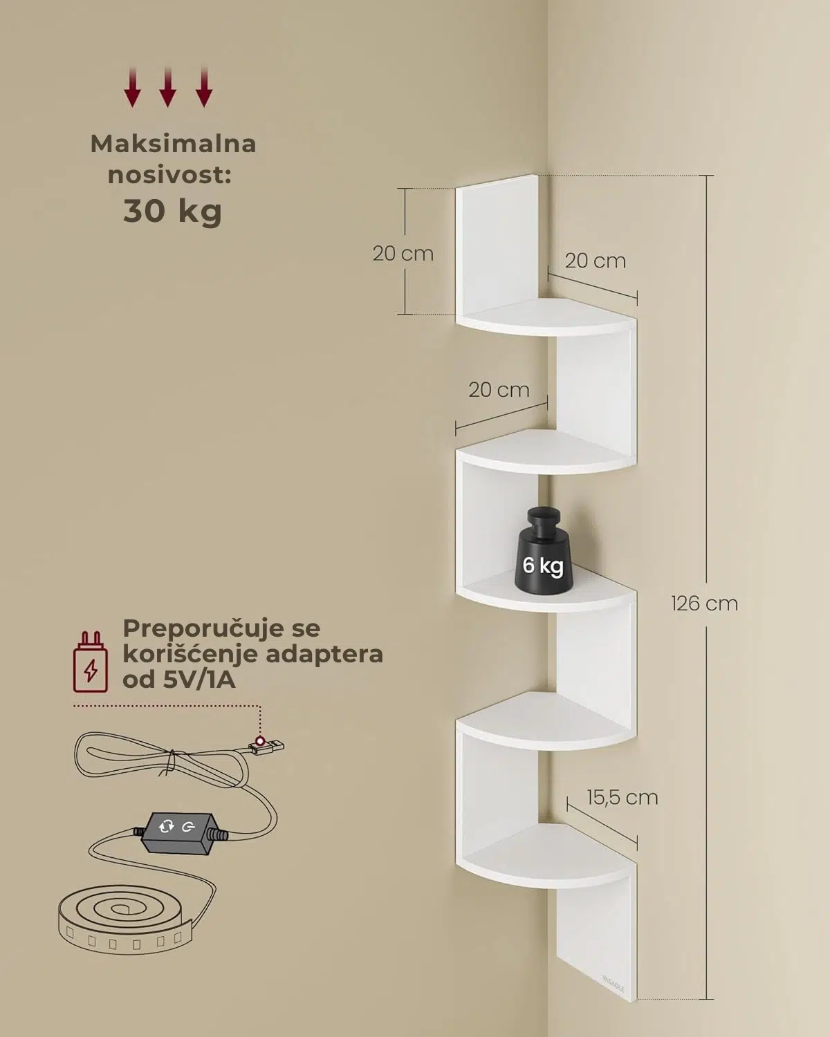 Idealna za dnevnu sobu, spavaću sobu, kupatilo ili kancelariju, ova polica maksimalno koristi neiskorišćene uglove i pruža dodatni prostor bez zauzimanja mesta.
