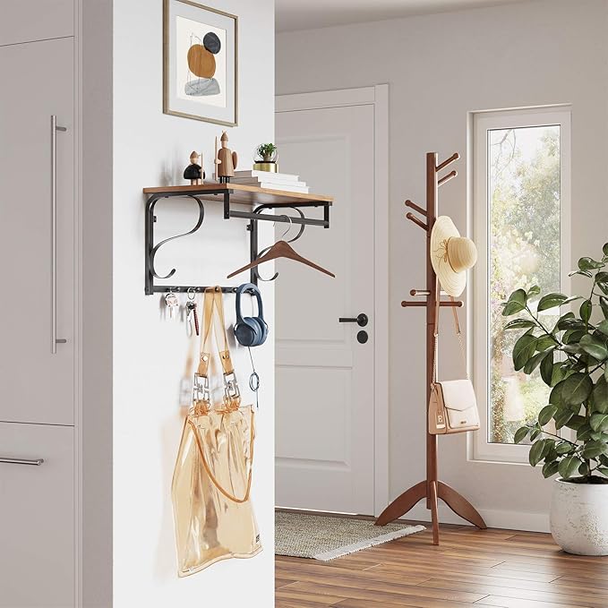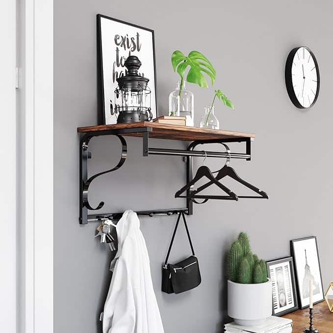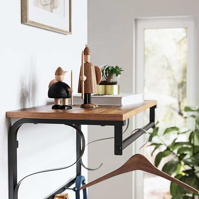 Dizajn 3-u-1: Ovaj čiviluk ima veliku policu (60 x 30 cm), šipku za odeću i 5 kukica za kapute; takođe je možete koristiti za izlaganje okvira za slike.