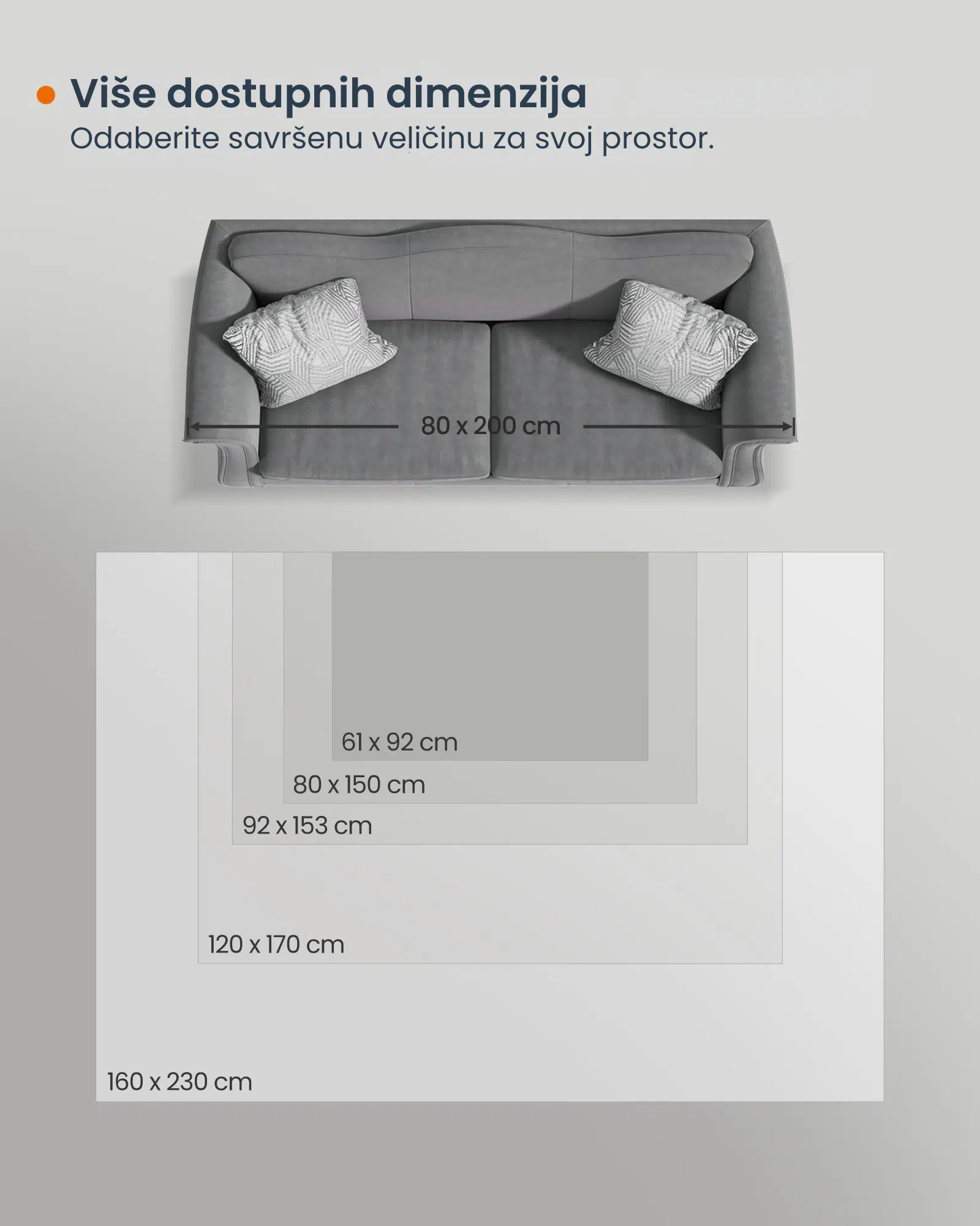 Mek korak: Sa površinom od poliesterskog vlakna težine 700 g/m² i međuslojem od filca težine 200 g/m², ovaj tepih za dnevnu sobu pruža prijatnu mekoću, idealnu za prvi korak iz kreveta ili za opuštanje.
