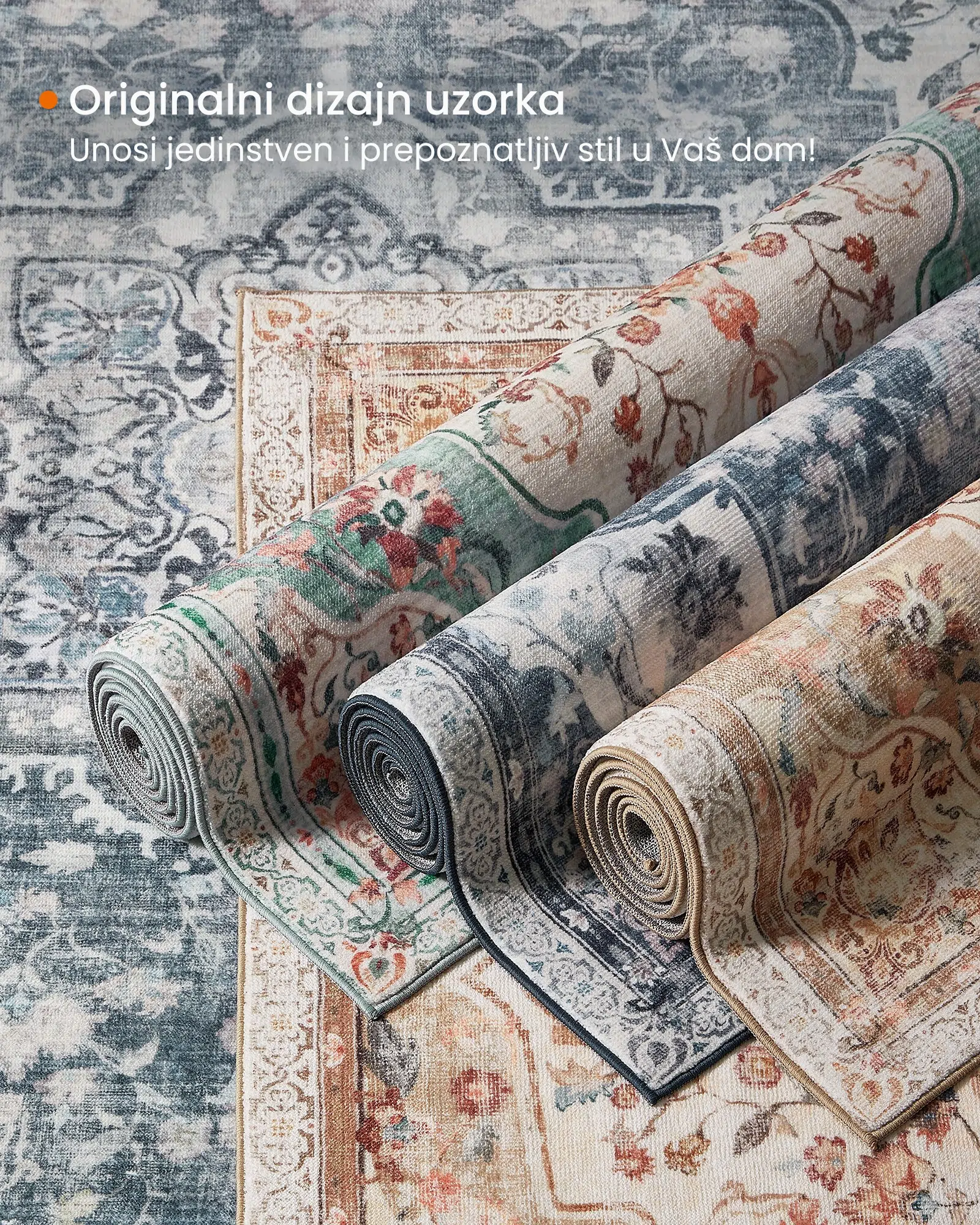 Vintage šarm: Uronite u spoj bezvremenske elegancije i modernog komfora sa našim tepihom. Složen dezen i bogate boje stvaraju toplu, prijatnu atmosferu i unose dašak nostalgije u svaku prostoriju.